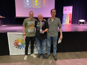 Na zo’n 3,5 uur vol audio- en videofragmenten, foto’s, AI-beelden én een live drummer kon de balans worden opgemaakt. En na een indrukwekkende eindsprint na de pauze trokken Frank en Hans uiteindelijk aan het langste eind. De wisselbeker gaat dit jaar dus mee naar Tegelen!